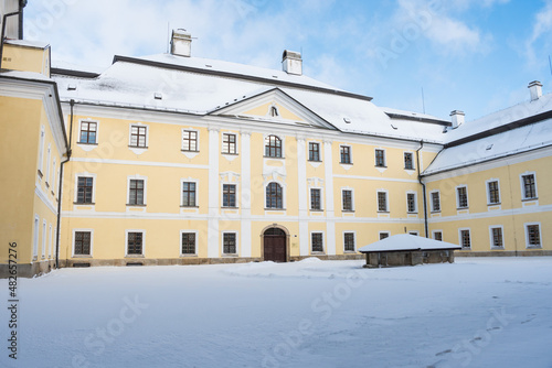 Cistercian monastery castle Zdar nad Sazavou in winter, Czech Republic