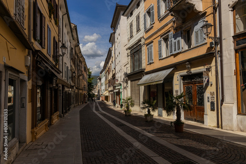 City of Gorizia, Piazza della Vittoria with the Church of Sant'Ignazio and the fountain. The beautiful streets and the castle behind them are a trace of history. Cultural Heritage Capital 2025.