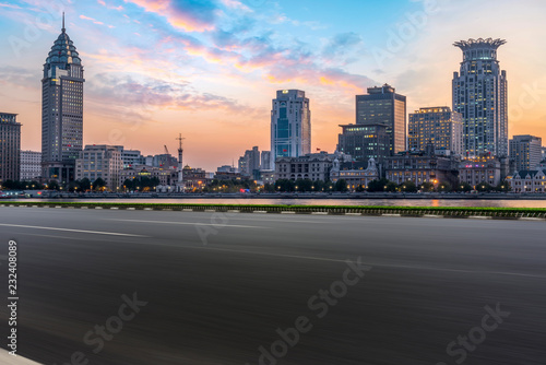 City skyscrapers and road asphalt pavement
