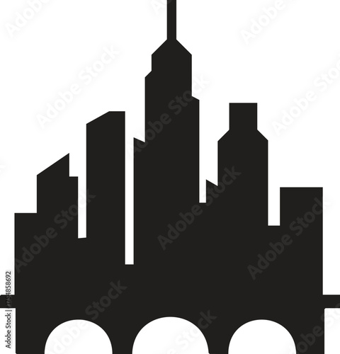 Cityscape silhouette, skyline vector illustration, urban landscape, buildings and towers, modern city horizon, isolated black shape, architecture, metropolitan scene