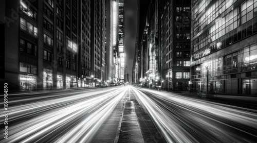 city, night, street, light, speed, movement, energy, urban, long, exposure, car, traffic, abstract, blur, motion, dynamic, black, white, grey, dark, building, architecture, glasses, window, street light, asphalt, line, pattern, geometric, city landscape, modern, contemporary, futuristic, minimal, photo, art, photo