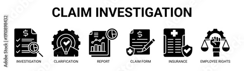 Claim Investigation web banner icon vector illustration concept with icon of investigation, clarification, report, claim form, insurance, and employee rights.