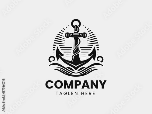 Classic Anchor Silhouette Wave Details Maritime Symbol Vector Logo Design, Maritime Anchor Wave Logo, Vintage Anchor Wave Symbol Logo