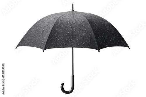 Classic black umbrella with raindrops on its surface, isolated on a transparent background, offering protection from a downpour