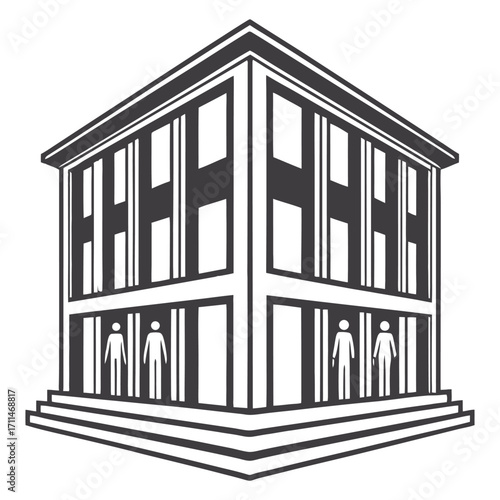 Classic building facade with columns and figures isometric perspective architectural icon stakeholder icon