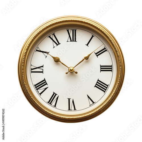clock, time, gold, roman, numeral, antique, vintage, hours, minute, face, watch, old, round, style, retro, design, wall, metal, white, symbol, number, dial, hand, second, alarm, deadline, transparent, background, classic, with, black