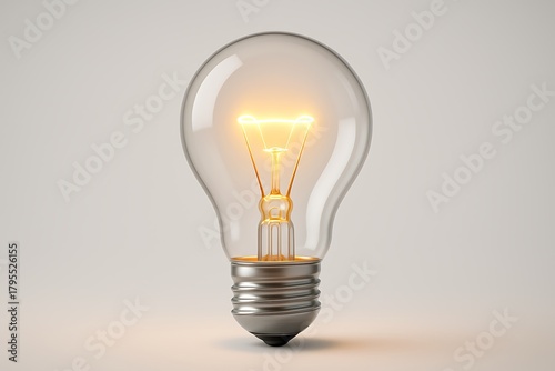Classic incandescent light bulb glowing warmly against a neutral background