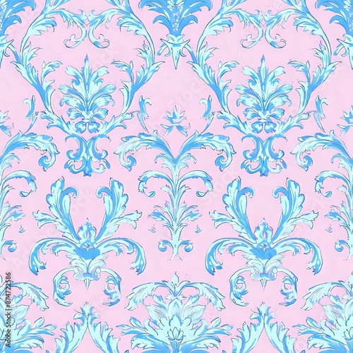 Classic Light Blue and Pink Floral Motif Seamless Textile Print