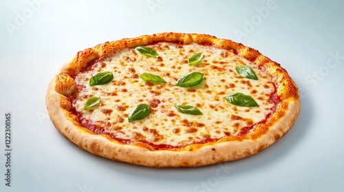 Classic Margherita Pizza with Fresh Basil Leaves on Wooden Table