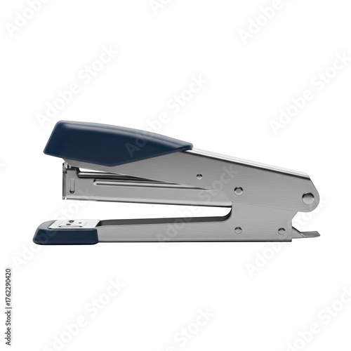 stapler, office, tool, silver, blue, paper, staple, document, work, stationary, metal, equipment, business, supply, desk, organisation, bind, clip, mechanism, device, accessory, workplace, closeup, object, view, nobody, essential, practical, efficiency, handle, footed, arm, spring, lever, cartridge, fastener, binding, paperwork, archive, record, report, manual, transparent, isolated, alpha