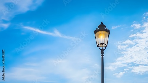 street light, lamp-post, light post, blue skies, cloud, sky, light, classic, vintage, old, lantern, street light, illumination, daytime, summer, bright, clear, weather, nature, background, image, photo, photo, design, element, urban, city, town, scene, view, landscape, elegance, aesthetic, beautiful, scenic, cloud, daylight, lamp