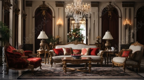 classic, villa, interior, illustration, luxury, elegant, opulent, traditional, chandelier, velvet, ornate, wooden, wallpaper, antique, timeless, cosy, inviting, warm, rich, patterned, grand, intricate, accent, furniture, accessory, ambience, design, living, room, space, lighting