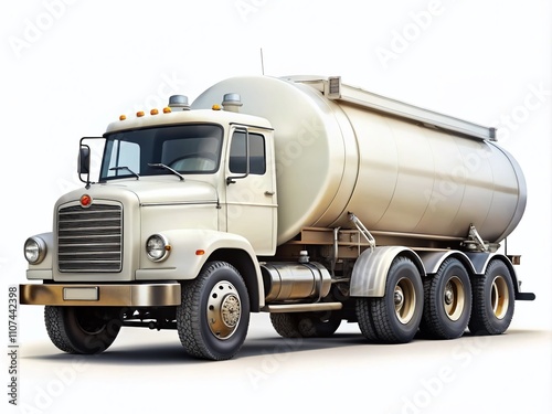 Classic white fuel tanker truck clipart in realistic PNG format, ideal for transport, delivery, oil industry, and logistics applications. Perfect for enhancing your projects.