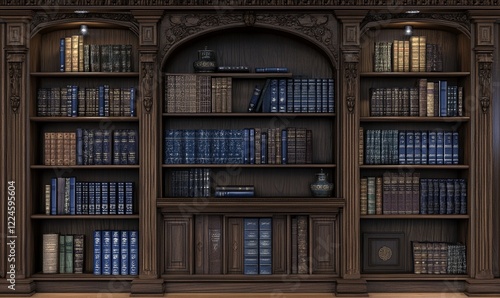 Classic wooden bookshelf filled with various books, ideal for education or library concepts