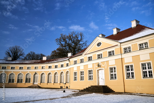 facades, palace, winter, architecture, floor, museum, window, door, roof, tile, balcony, square, tree, snow, frost, sky, cloud, nature, trunk, tree branch, leafy, village
