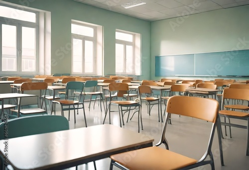classroom in school. open and airy class room with chairs