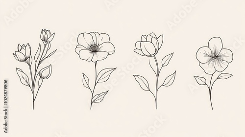 Clean and modern line art logos with floral illustrations, ideal for natural and organic beauty product branding.