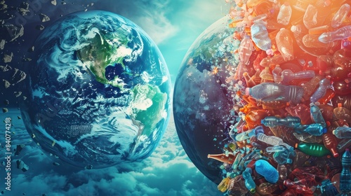 Clean and polluted Earth opposing each other