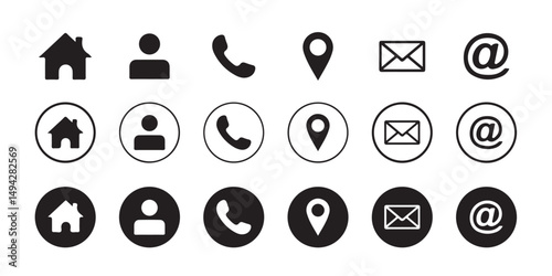 Clean Contact & Communication Icons – Home, User, Location, Phone Call, Email,Minimal Line, Solid & Outline Styles.