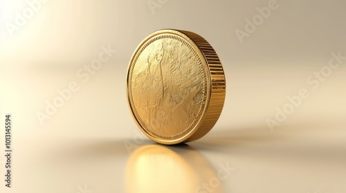 Clean Image of a Golden Coin on a Plain Background Symbolizing Financial Success