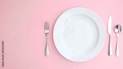 Clean white plate and silver cutlery on a soft pink background.
