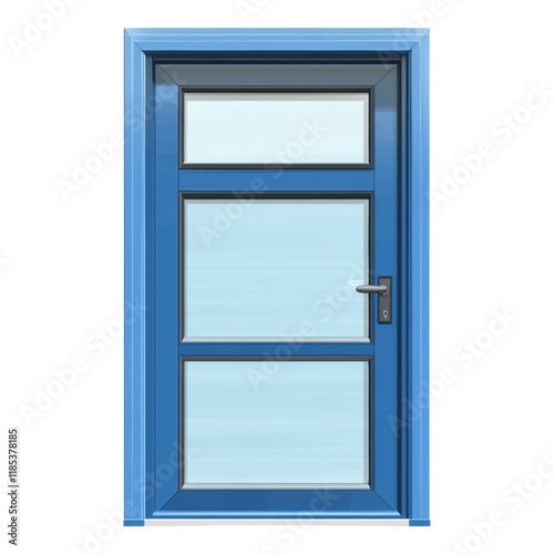 Clear blue glass door, minimalist design, transparent background, ideal for digital projects, modern aesthetic, versatile usage