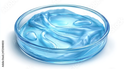 Clear Gel Texture in Laboratory Petri Dish on White Background