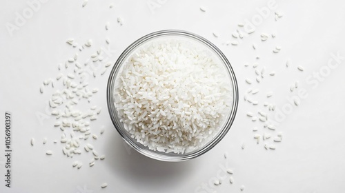Clear Glass Bowl Overflowing with Rice from Above