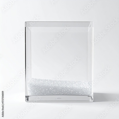 box, cube, clear, transparent, acrylic, glasses, square, white, granule, texture, crystal, frost, snow, minimal, simple, empty, container, display, case, storage, studio, isolated, background, plain, clean, modern, contemporary, aesthetic, still, life, indoor, tabletop, surface, reflective, edge, corner, presentation, showcase, object, decorative, element, sample, material, plastic, geometric, art, design, elegant