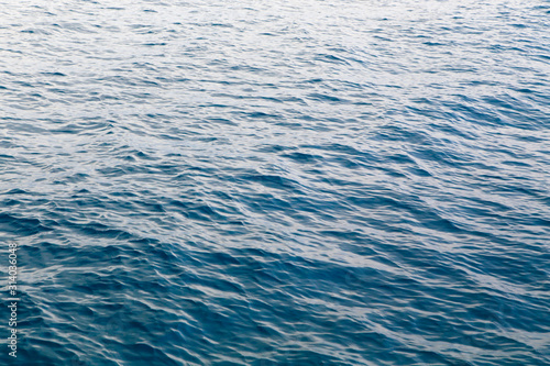 Clear water texture in blue. Background of the ocean and the sea backlit by the sun.