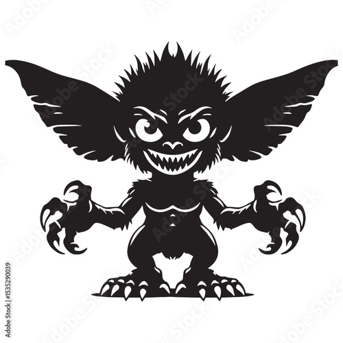 Clever Gremlin Smart Little Monster Shape Silhouette, Thinking Up New Ways to Cause Trouble - gremlin silhouette - gremlin vector - silhouette of gremlin
