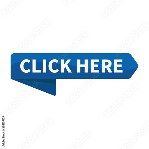 Click Here In Blue Rectangle Ribbon Shape For Sale Advertising Business Marketing Social Media Information