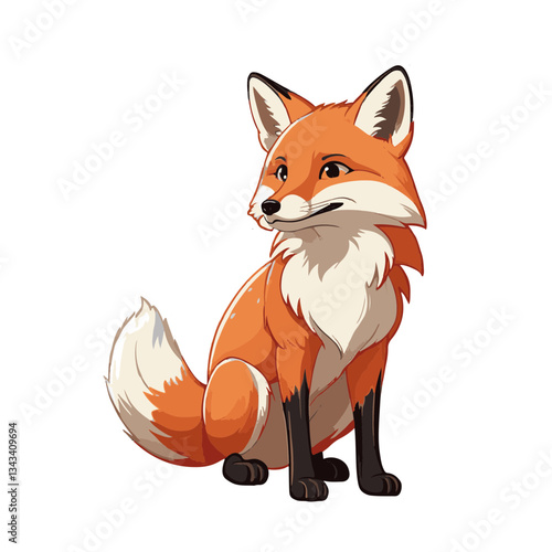 Clip Art illustration of a Cute cartoon fox character sitting with a friendly expression and vibrant colors against a plain background