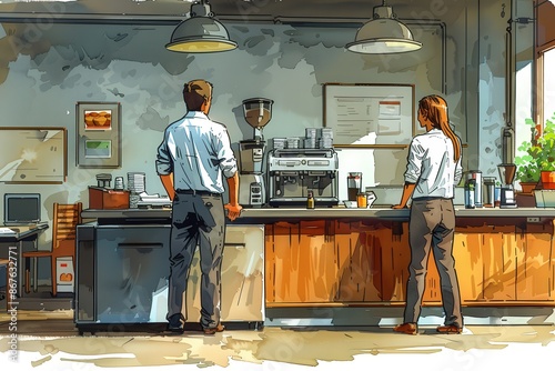 clip art, illustration, staff, interact, break, room, hotel, taking, camaraderie, teamwork, positive, work, environment