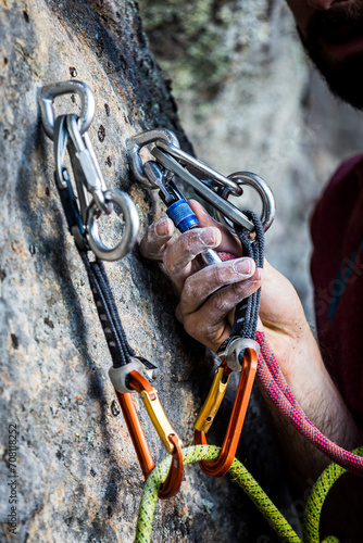 sport, weir, escalade, quebec, canada, work, equipment, hand, hand, tool, metal, cutting, mountain, people, person, climb, rock, anchor, clipping, snap-hook