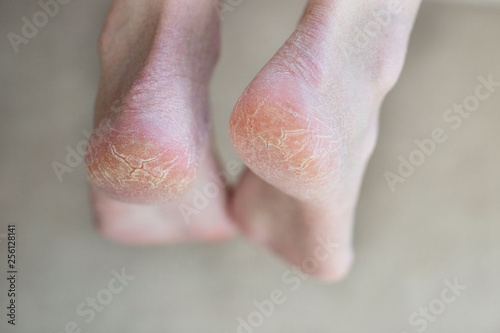 Close up cracked heels. Health problems with skin on feet