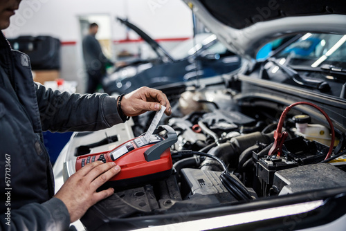 car, diagnostic, hood, fix, maintenance, garage, men at work, man, people, job, auto, vehicle, workshop, mechanic, shop, work, closeup, technical, review, tool, device, repair, hand, inspect, battery, technician, service, engine, voltage, repairing, checking, diagnostic, electronic, inspection, measuring