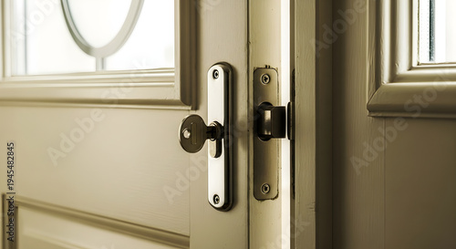 Close up of a door with a modern lever handle and latch