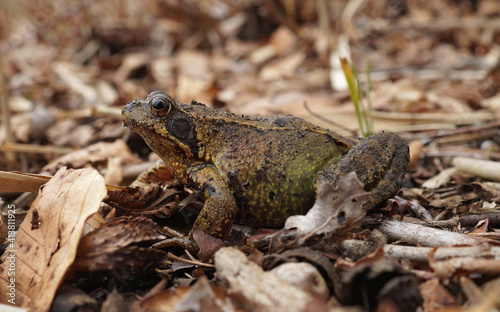 Close up of a female common brown frog , Rana temporaria during spring migration
