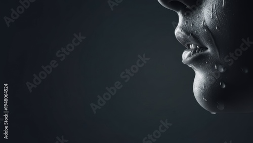 face, water droplets, skincare, beauty, cosmetic, hydratation, wellness, dark background, closeup, person, profile, half face, moisturise, glow, water, droplet, splash, refreshing, rejuvenation, advertising, marketing, beauty product, skin, care, routine, healthy, natural, clean, minimalist, simple, studio, shot
