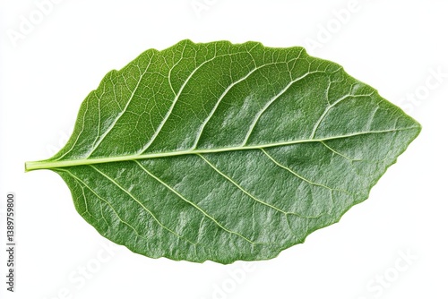 Close up of a vibrant green leaf intricate veins and texture isolated on white background