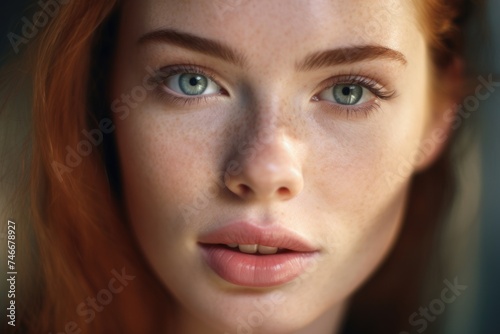 Close up of a woman with freckles. Suitable for skincare or beauty concepts