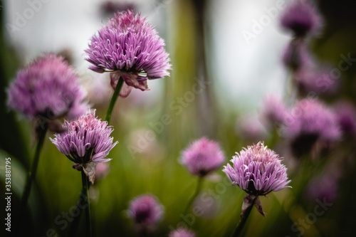 Close up of blooming chives