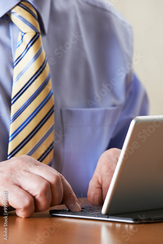 Close Up Of Businessman Using Digital Tablet With Detachable Key