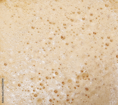 close up of foam coffee with bubbles texture and background, top view