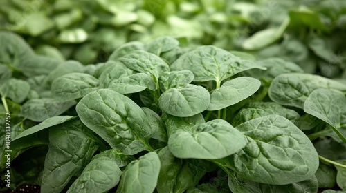 Close Up of Fresh Green Spinach Leaves Growing Organically