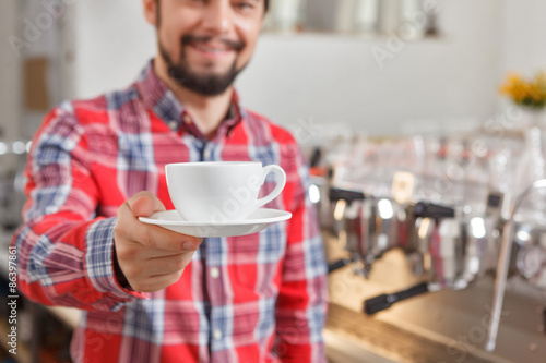man, barista, men at work, client, happy, staff, cheerful, owner, shop, young, fresh, cup, mug, cafeteria, cafes, employer, at work, job, retail, serve, portrait, employed, selective focus, coffee machine, attractive, day, business, drink, constructed, adult, eatery, occupation, service, male, smile, closeup, front, racked, beautiful, indoor, waiter, food, meal, italian, espresso, steam, person, friendly