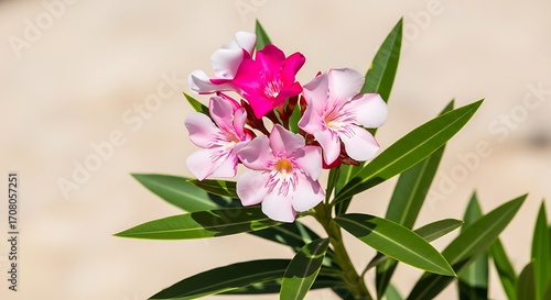 oleander, flower, bloom, pink, plant, leaf, green, flora, floral, blossom, garden, nature, summer, spring, botany, botanical, tropical, exotic, shrub, bush, tree branch, stem, close, up, macro, detail, beauty, beautiful, bright