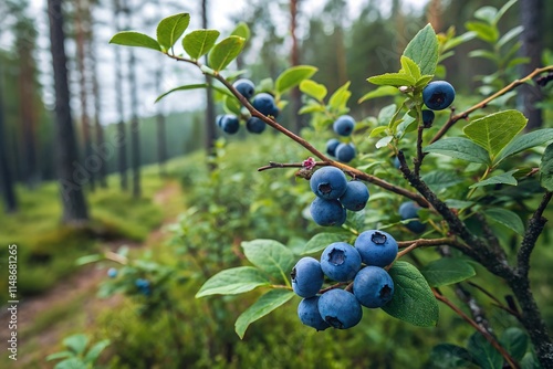 Close up of ripe blueberries in forest or plantation