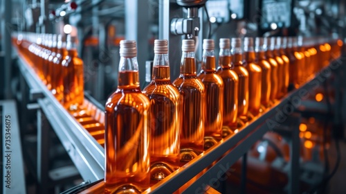 Close up of wine bottle production process